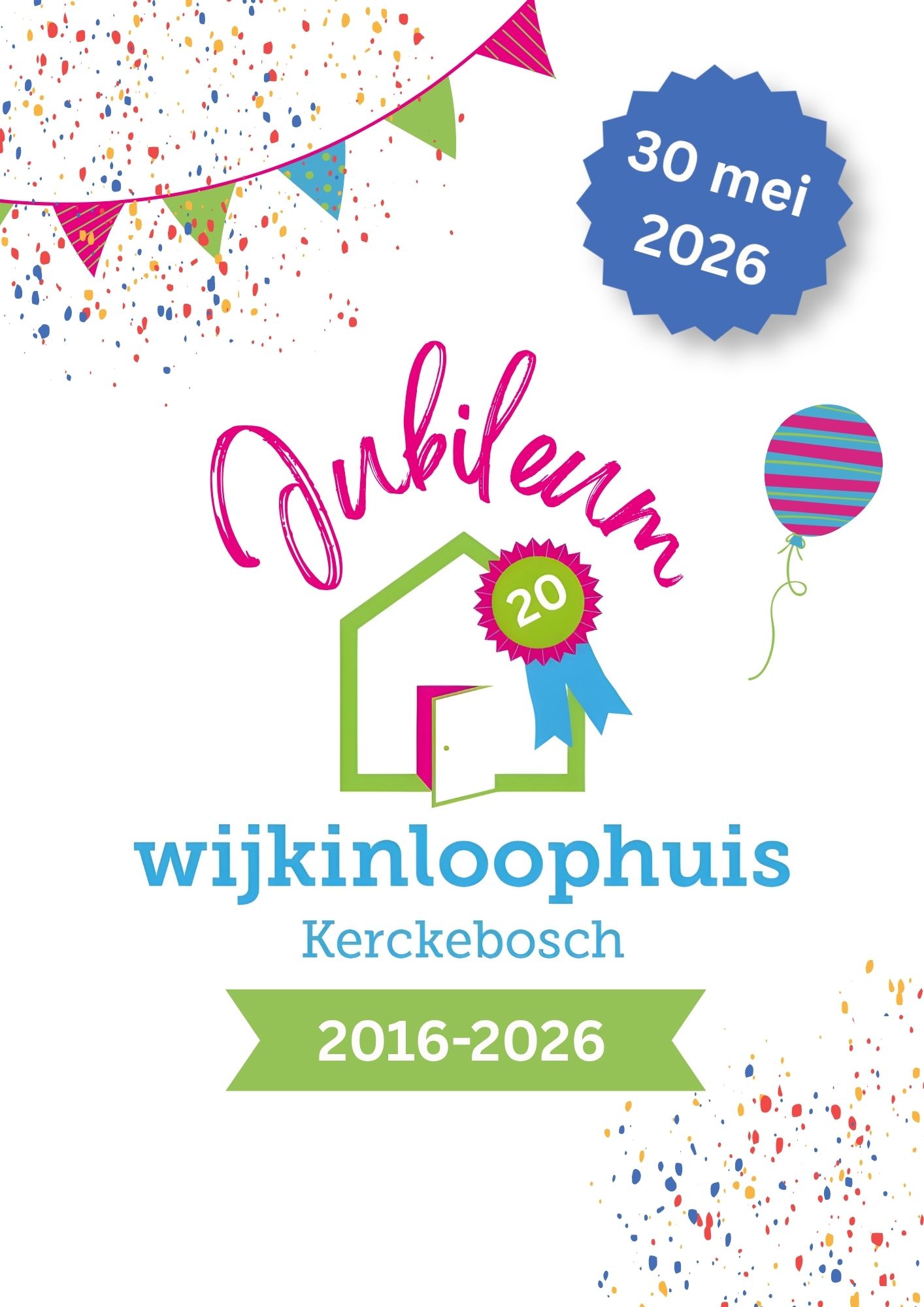 In mei bestaat Wijkinloophuis Kerckebosch 20 jaar! Op zaterdag 30 mei 2026 is het daarom feest voor onze bezoekers, vrijwilligers, buurtbewoners en relaties. Tussen 14.00 uur en 18.30 uur is er een gevarieerd en gezellig programma voor alle leeftijden. Samen blikken we terug en kijken we vooruit. We sluiten de middag af met een kleine maaltijd en een leuke verrassing. Ook voor de kinderen zijn er activiteiten. Kom o.a. poffertjes eten en doe mee met de kleurplatenwedstrijd. Je bent van harte welkom! De toegang is gratis. Locatie: Prinses Margrietlaan 32/Buitenterrein Zwaluwnest.