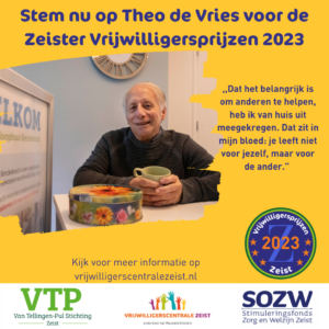 De inzet van vrijwilligers is onmisbaar voor ons Wijkinloophuis! We zijn dan ook heel trots op ‘onze’ Theo. Hij is genomineerd voor de Zeister vrijwilligersprijzen 2023! Stemmen jullie met ons mee? Dat kan tot en met 3 december via de website